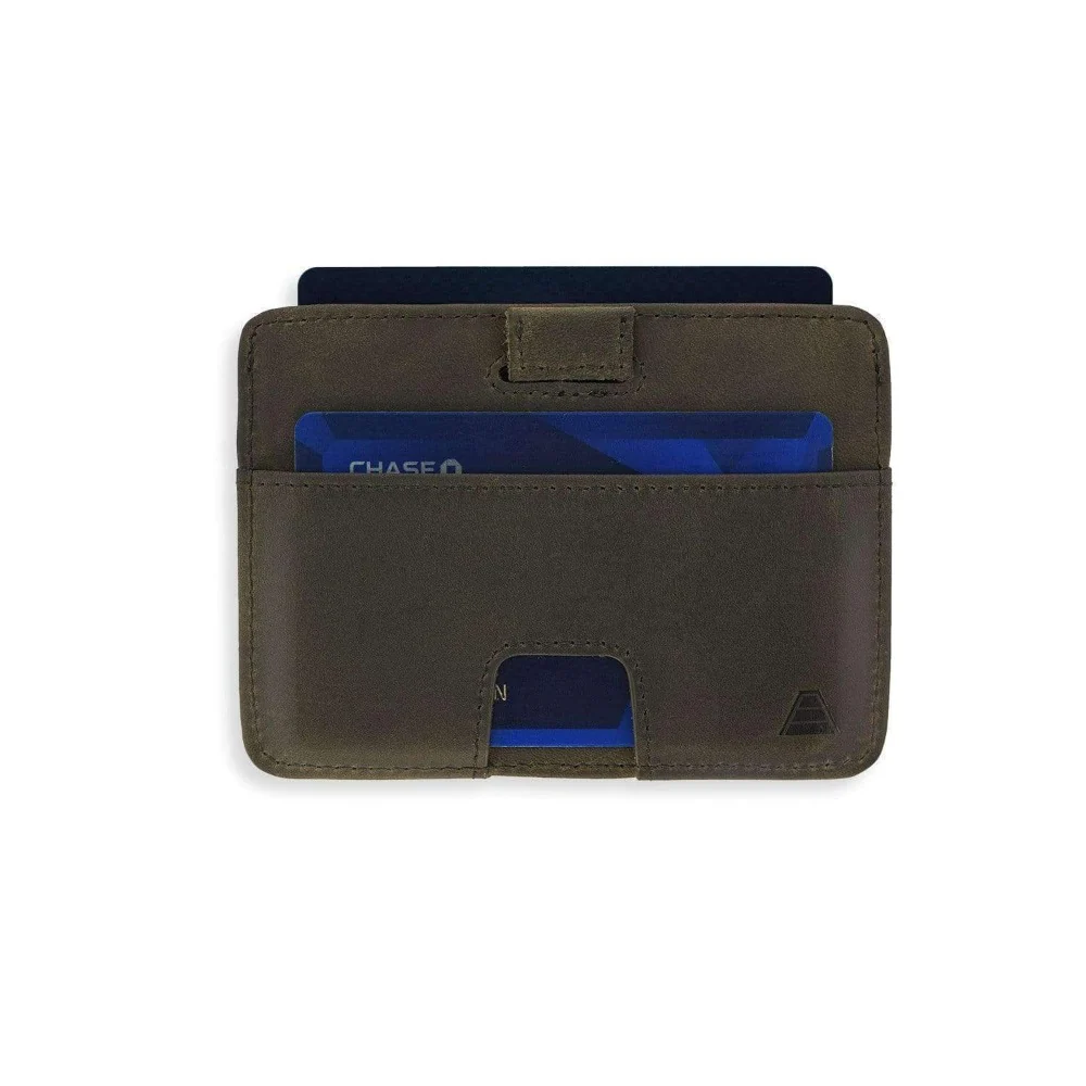 The Turner was born and raised through crowdfunding and was designed to be stylish, functional, and lightweight, but still highly durable. Comfortably hold one to eight cards in the center pocket and have quick access with use of the pull tab. The Turner is made of full grain leather, the highest of quality grade of leather, with RFID-blocking materials to prevent personal credit card information from being stolen.